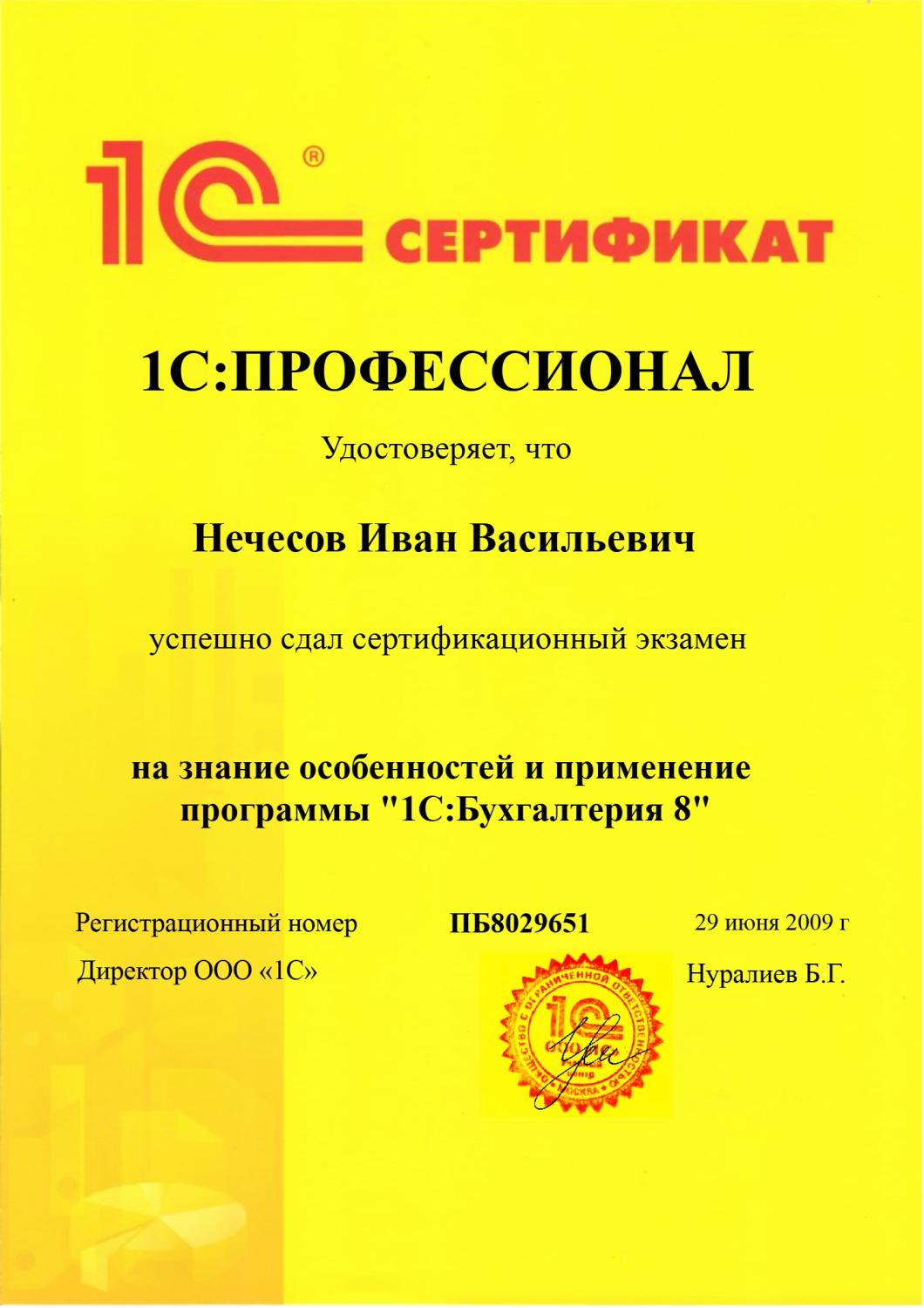 1С:Профессионал по платформе 8.х