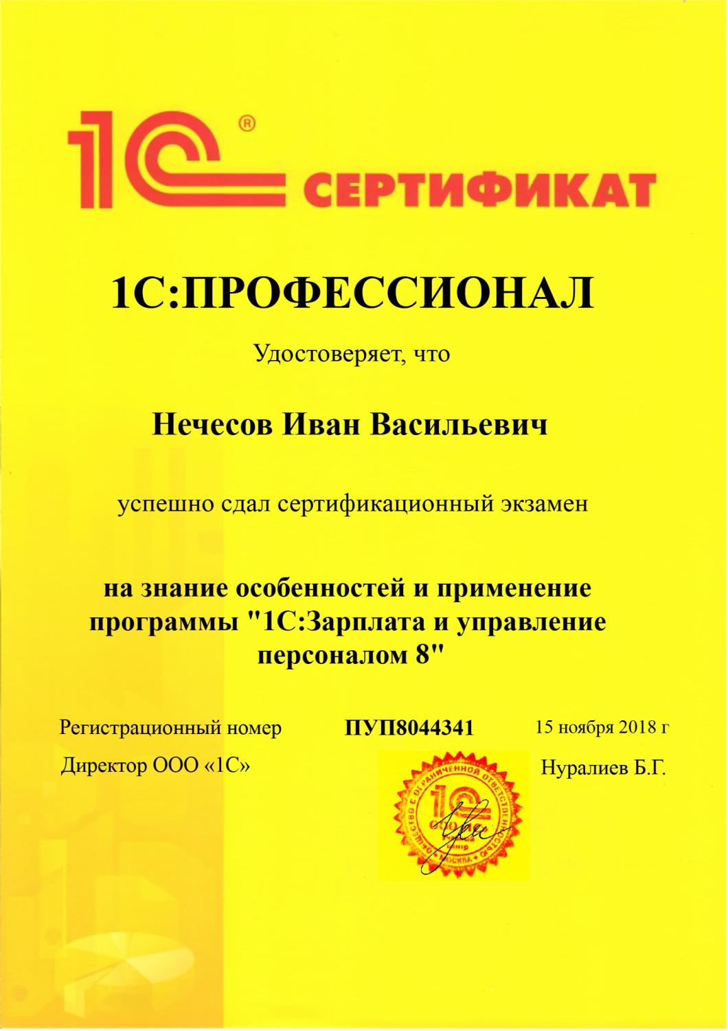 1С:Профессионал по конфигурации 1С:Зарплата и управление персоналом 8